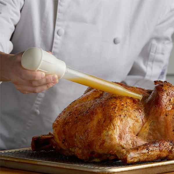 This long baster is made of unbreakable, translucent nylon and accompanies a white Rubber Bulb. It has a general length of 11″. The cylinder is 7-1/2″ long and has an estimation scale as an afterthought. Try using it as an easy way to divide grease from sauce by siphoning the separated oil droplets from the surface. They also work great as pancake batter dispensers to form excellent uniform pancakes without burning yourself.