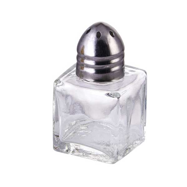 Add style and flavor to your table with this 1/2 oz. Glass Square Shaker with Chrome-Plated Top. Salt and pepper shakers are necessary aspects of any traditional table setting. This shaker can be used for salt, pepper, or finely ground seasonings. It has a clear glass construction that enables an on-the-spot view of its contents.