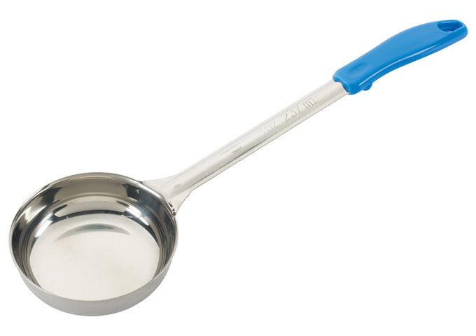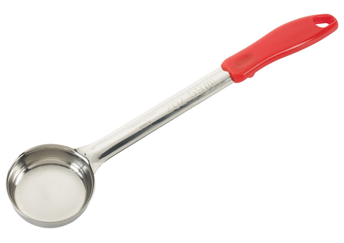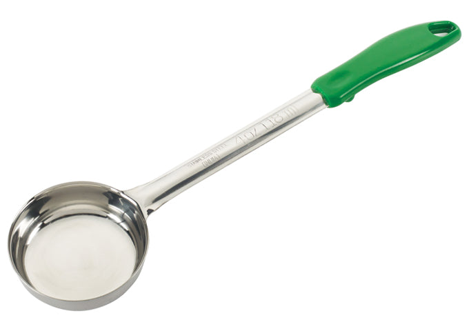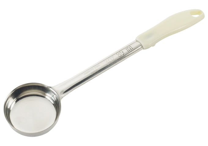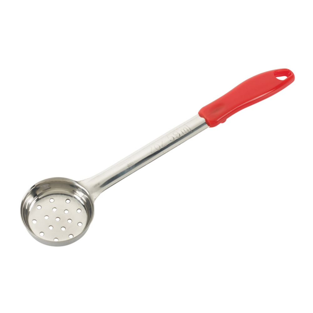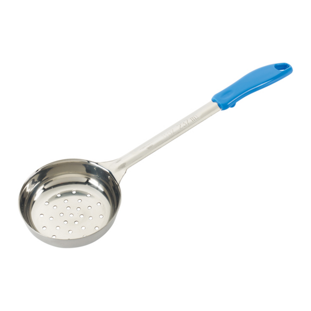 The Winco stainless steel food portioner, designed for scooping and serving consistent portions of food such as mashed potatoes, vegetables, or ice cream. It has a yellow plastic handle for comfortable and non-slip grip, and The perforated design allows for efficient draining of liquids and ensures consistent portioning. Ideal for use in commercial kitchens, buffets, or catering events, the Winco Stainless Steel Portioners is a reliable and durable tool that can make food service easier and more efficient.