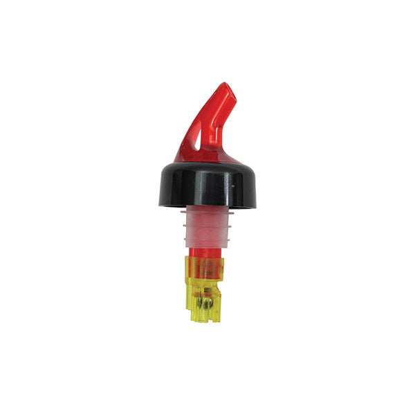 Ensure accurate pour every time with this 1½ Oz Yellow Dip Tube, Red Spout Proper Pour™. This liquor pourer is designed to fit on a premium liquor bottle with a