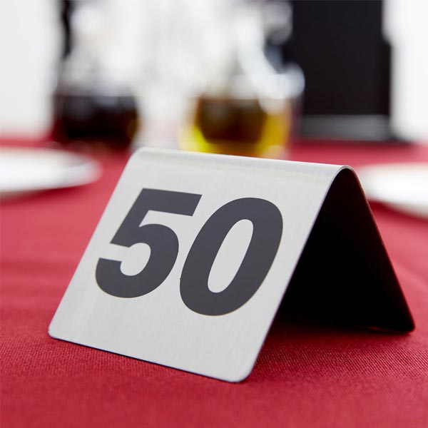 1 to 50 Stainless Steel Table Tent Number / Tablecraft