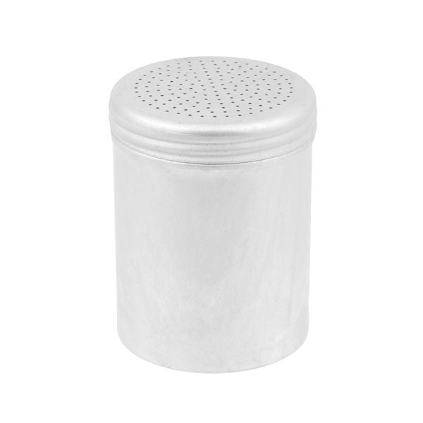 Make salt, sugar, and spices more accessible with this 10 oz. Aluminum Shaker from Winco! Ideal for use in the kitchen or on the table, this shaker highlights small holes ideal for use with finely ground ingredients. Its durable 18 gauge aluminum construction makes it a reliable choice for your commercial establishment. Perfect for a variety of applications, use this shaker in your bakery to sprinkle sugar on baked goods, or top your hot, fresh pizza with parmesan cheese at your restaurant or pizza shop. Also, the riveted handle makes it comfortable to use.