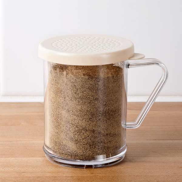 With a 10 oz. limit, this Polycarbonate Dredge, Beige, Salt & Pepper Lid holds simply enough items to last through numerous utilizations without getting too hard to even consider shaking.