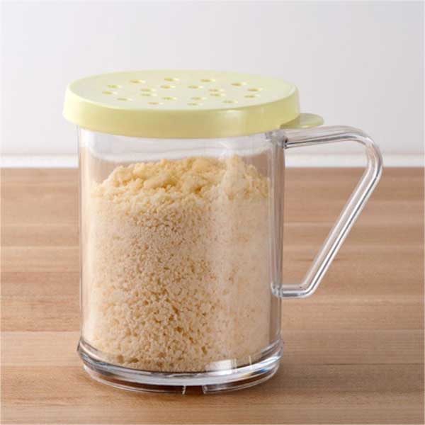 With a 10 oz. limit, this Polycarbonate Shaker with Yellow Lid for Ground Cheese holds simply enough items to last through numerous utilizations without getting too hard to even consider shaking. Highlighting a perfectly clear body, it’s simple for your clients and staff to see the item and distinguish when tops off are essential. It accompanies a snap-tight punctured yellow top for productive dispensing.
