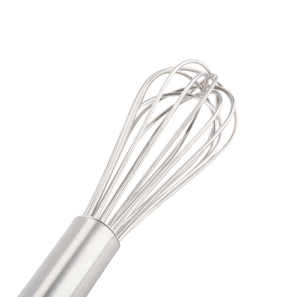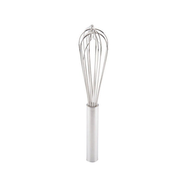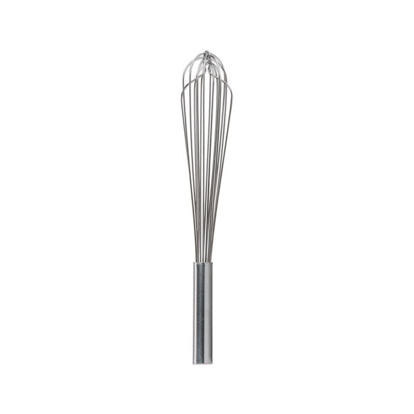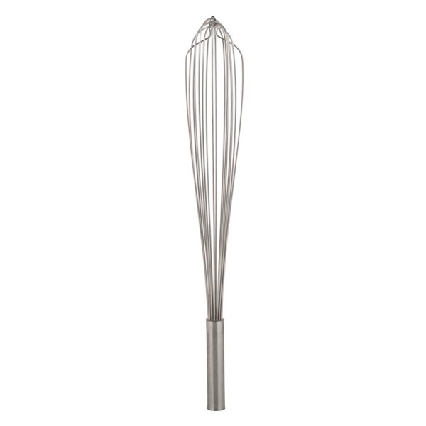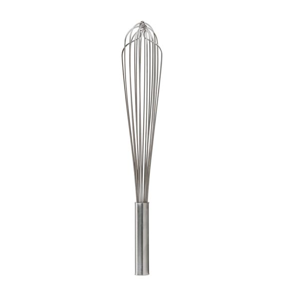 Excellent addition to any cafe, restaurant, bakery, or pastry shop, this Stainless Steel French Whisk features a fully soldered, 18/8 stainless steel construction that is sure to provide your establishment with years of service. It is perfect for the more labor-intensive mixing of heavy batters, creams, and sauces thanks to its sound build and solid handle, which ensure that the wires are held firmly in place. This whisk provides the best support when whipping thick foods like mashed potatoes or puff pastries for your valued guests, but it’s a great multi-purpose tool for all your cooking needs as well. Its solid handle ensures a sturdy grip for a quality feel as you prepare your culinary creations.