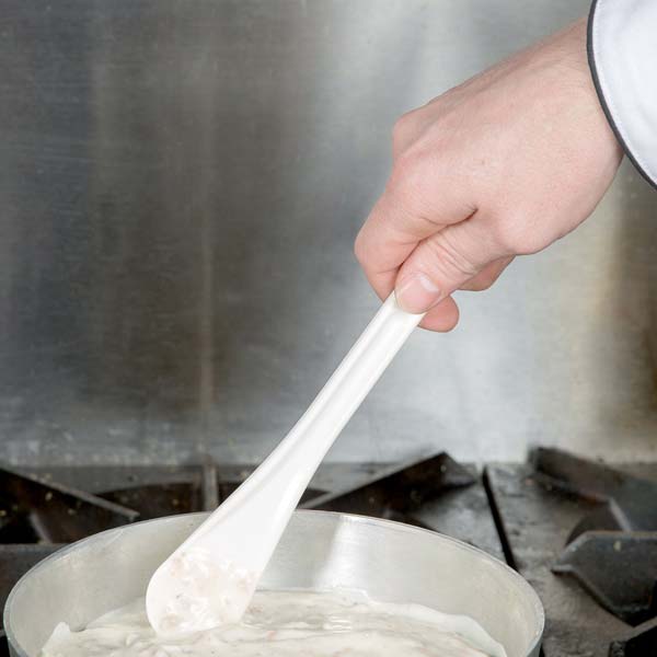 Created with a wide, flat blade, this 10″14''20'' mixing paddle easily scrapes the sides of mixing bowls, assuring thorough mixing and folding. This versatile paddle is also excellent for spreading icing and stirring melted hot chocolate. Constructed from high-quality nylon, this mixing paddle is stain resistant and has unbeatable strength to endure temperatures up to 425°F. To keep your hands safely away from the food, this BPA-free mixing paddle has a long, convenient handle that enables you to reach the bottom of pots.