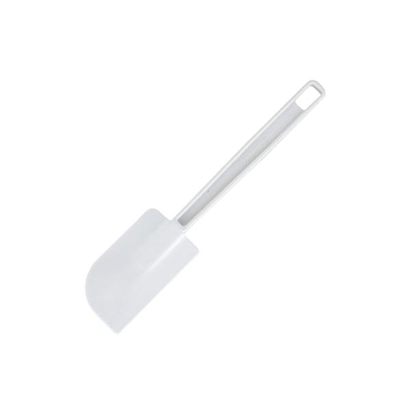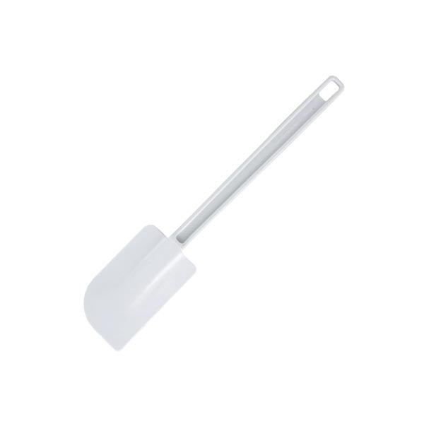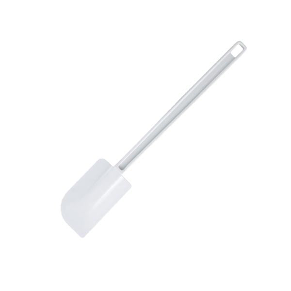 Created with a flat, blunt blade, this White Scraper easily reaches into nooks and crannies of bowls, tight containers, and between mixing blades. With its plastic construction, this scraper is strong enough to withstand heavy-duty use without bending. With an extended length, this spatula is an all-purpose addition to any commercial kitchen. This dishwasher-safe scraper will withstand the rigors of heavy-duty use.