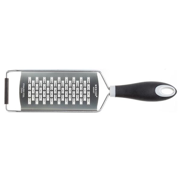 Create the perfect pizzaazz for your plans with this 11 1/2″ Stainless Steel Ribbon Grater with Santoprene Handle. This coarse grater is perfect for grating hard cheeses for salads, pizzas,