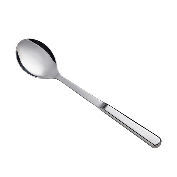 Create a sophisticated table setting with this 11 3/4″ Hollow Stainless Steel Handle Solid Serving Spoon. Made of stainless steel, it will be a long-lasting and attractive addition to your busy dining area. It is great for completing table settings at bistros, cafes, and catered events.