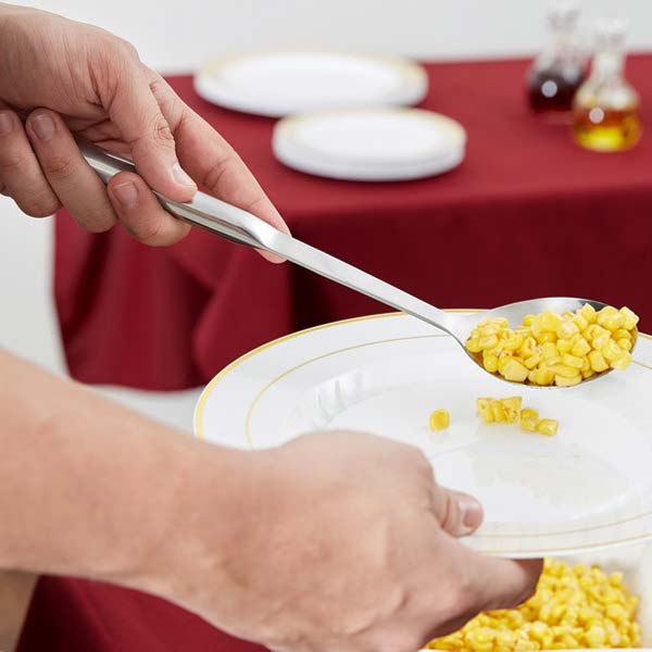 Create a sophisticated table setting with this 11 3/4″ Hollow Stainless Steel Handle Solid Serving Spoon. Made of stainless steel, it will be a long-lasting and attractive addition to your