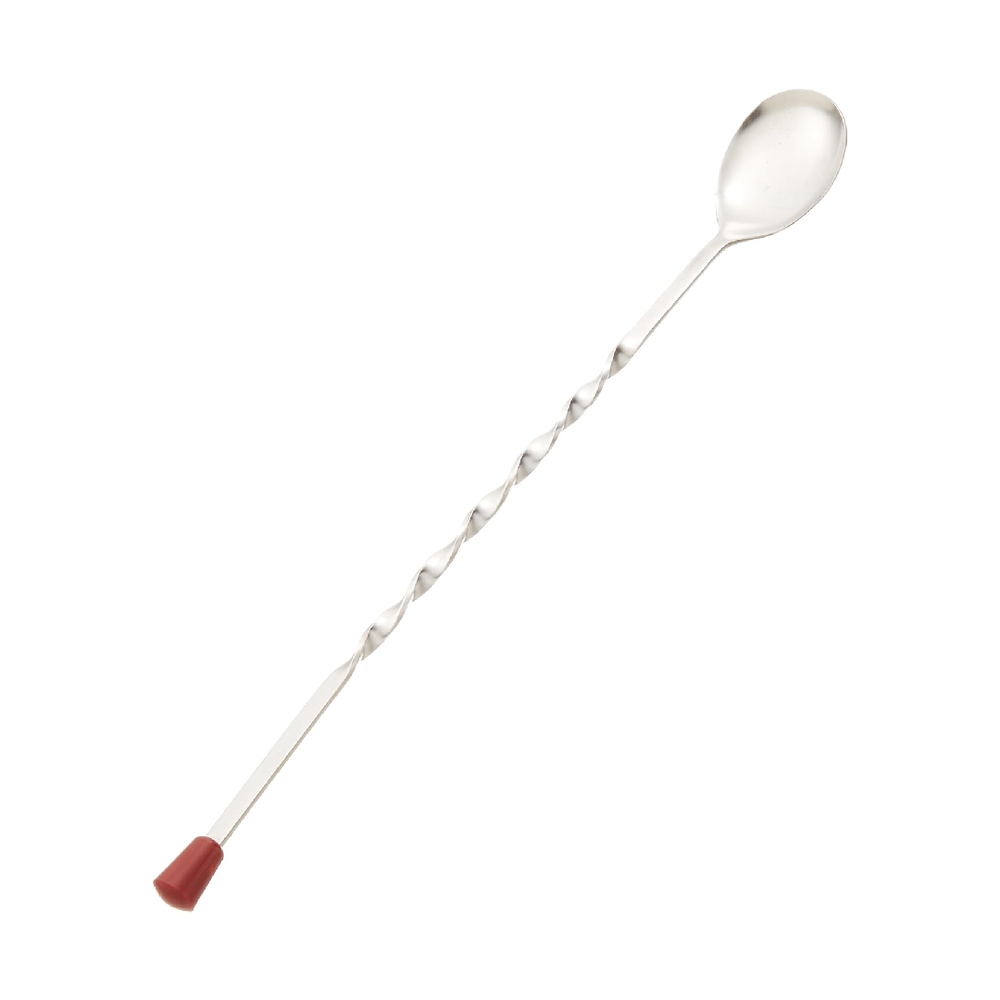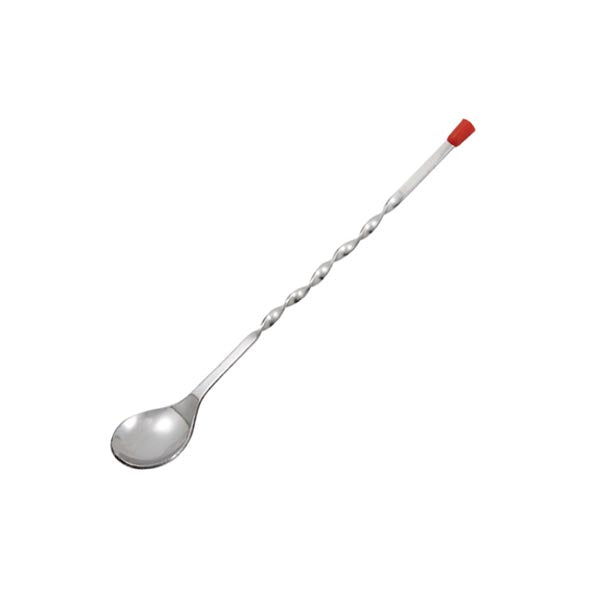 Excellent for stirring shakes and other mixed drinks, the 11″ Stainless Steel Bar Spoon with Red Knob is a must-have in restaurants, hotels, and bars. To guarantee touch-free and sanitary stirring, this spoon has a long handle that reaches the bottom of tall glasses while providing a comfortable grip. Created to spin effortlessly in your hand, this spoon serves as a great alternative to cocktail shakers and is a great tool for less experienced bartenders. The teaspoon end is great for measuring out mix-ins such as sprinkles, crushed cookies, and other toppings too.