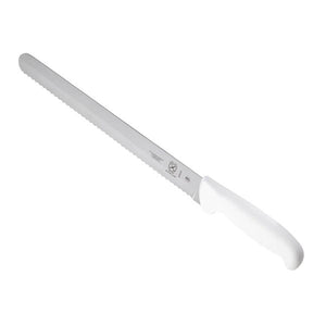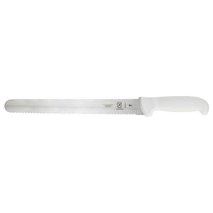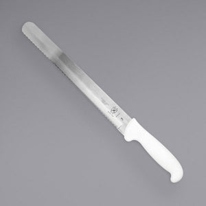 For the sharpest paring knife, the hard-working chef knife, or a set of stylish and functional steak knives, we offer quality handcrafted selections. This 11″ Serrated Edge Slicer Knife’s ergonomically designed, polypropylene handle of this knife helps you cut comfortably all day, while textured finger points and a protective finger guard provide slip-resistance and a more solid grip for added security.