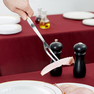 This 11″ Two-Pronged Pot Fork with Hollow Handle is made of durable, one-piece stainless steel with a mirror polish finish. Its 2-pronged design makes it the perfect tool for successfully serving carved meats, such as turkey, roast, prime rib, and more. Its classic, elegant design is ideal for upscale applications, but this fork is right at home for any number of occasions.