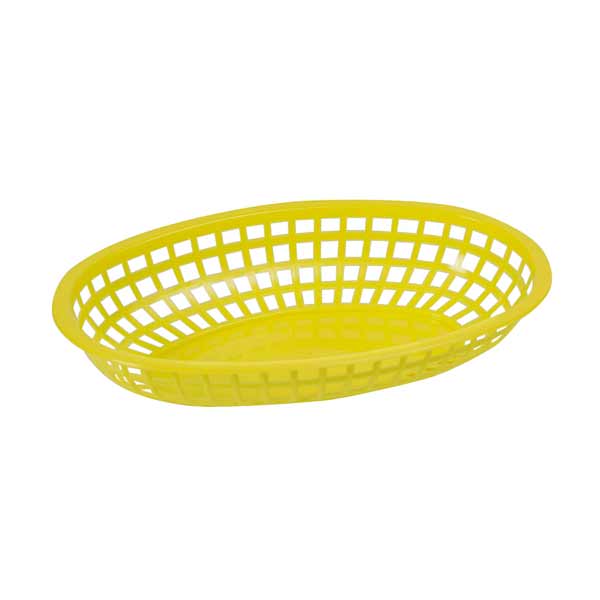 Excellent for any casual dining establishment, this 12 1/4″ Yellow Premium Oval Fast Food Basket is a unique alternative to traditional plates. From sports bars and family-style restaurants to pool cabanas and another outdoor dining, it complements any inviting and fun atmosphere. Also, its lightweight design, transporting full meals is easier than ever. You can simply add deli sandwich wrap paper to the bottom of the basket to intensify your food presentation and catch any grease or crumbs before they make their way onto tables, counters, or floors.