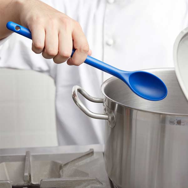 Mix and stir piping hot dishes with ease using the 12″ Blue Nylon Heat Resistant Spoon from Winco. Built from professional quality nylon, this BPA-free spoon gives unbeatable durability and will withstand heat up to 400°F. To keep your hands away from the pot, this stain-resistant spoon highlights a long, comfortable handle while its one-piece design makes it easy to clean. Also, this spoon boasts a one-piece design that eliminates hard to clean crevices that collect bacteria.