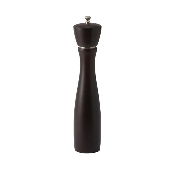 Constructed from eco-friendly rubberwood with a black matte finish, these 12″ Maestro Modern Pepper Mill makes for beautiful and reliable tabletop accessories that won’t experience shrinkage with age. Excellent for