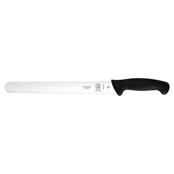 For every knife, you need we have a selection at buyhoreca.com. This serrated edge slicer knife is a sturdy instrument for any commercial task which is guaranteed to slide through the tough outer skin of any fruit, vegetable, or meat. This knife’s scalloped edge is excellent for slicing tomatoes, sausage, and bread and it’s edge allows for fast, easy cutting and helps prevent crushing or crumbling delicate products.