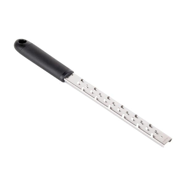 Add fresh-grated ingredients to all your signature meals using this 13″ Soft Grip Grater with Zester Blade. This grater highlights a corrosion-resistant etched stainless steel blade that’s sure to give years of reliable use. Its black, soft-grip handle guarantees employee comfort even after long use. It is ideal for delicately grating cheese to top off salads, chocolate for delectable desserts, and vegetables.