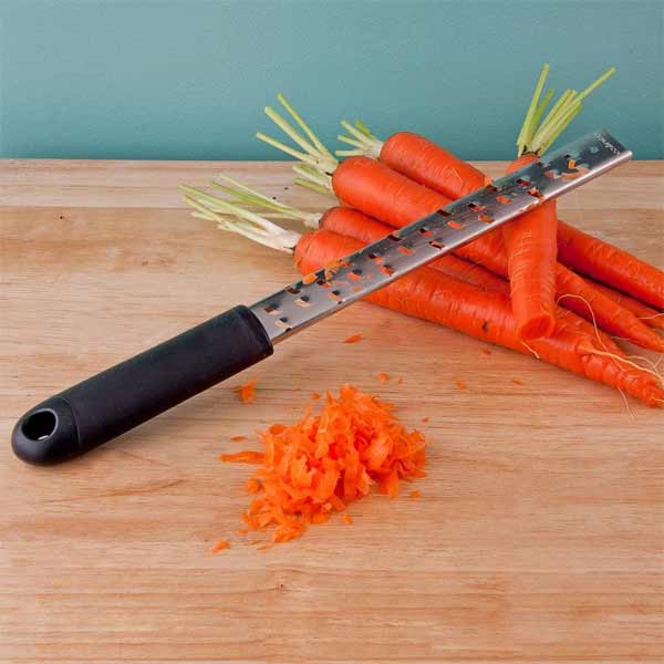 Add fresh-grated ingredients to all your signature meals using this 13″ Soft Grip Grater with Zester Blade. This grater highlights a corrosion-resistant etched stainless steel blade that’s sure to give