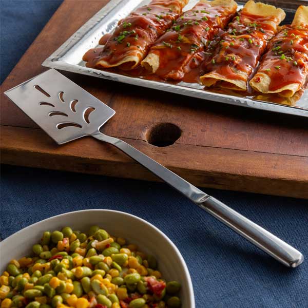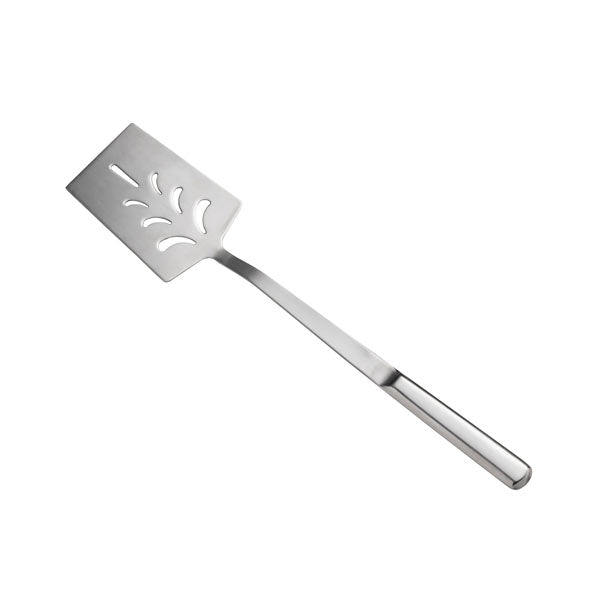 Made with durable stainless steel construction, this perforated turner is made to last in your busy restaurant. The classic style combined with a polished finish makes it particularly ideal for front-of-house use at buffets, catered events, or parties. Use this tuner to flip and adjust hot meats at your front-of-house display. From restaurants and hotels to catered events and parties, the polished design and versatile function of this stainless steel perforated turner make it a stylish alternative to traditional serving utensils.