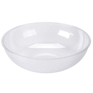 Perfect for outdoor entertaining or catered events, the 15-3/4″ Polycarbonate Pebbled Salad Bowl is great for serving salads, fruits, and more. Boasting a beautiful pebbled design, this bowl complements any table setting while its transparent body provides excellent product visibility.