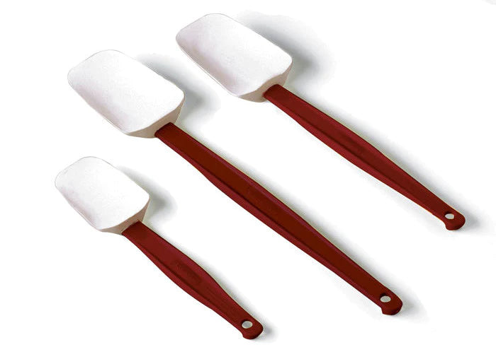 Multi-purpose 14" spoon-shaped spatula designed to resist temperatures up to 500°F in applications of scraping, scooping, and spreading in food preparation.