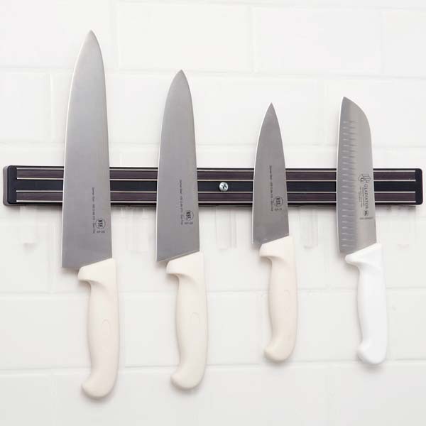 This convenient 18″ Plastic Magnetic Knife Bar / Holder from Winco allows you to easily place your knives for quick and sanitary storage. Highlighting magnetic strips, this knife bar securely holds cutlery for easy access and organization without damaging their sharp edges. This holder comes with mounting screws and is very useful at bars or any place that available counter space is at a minimum.