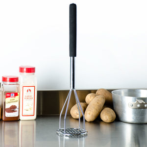 The Winco Potato Masher with Plastic Handle is available in both square and round shapes. The masher is made of durable stainless steel and features a comfortable plastic handle for