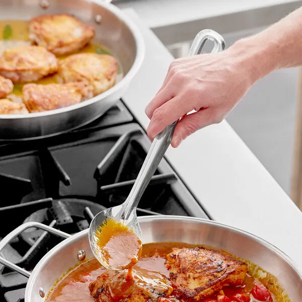 An incredibly versatile tool good for anything from skimming fat to scooping up pan sauce, the Winco 18″ basting spoon is perfect for all of your kitchen needs. The handle is engineered to be more graspable than ordinary bases