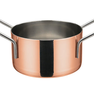 With attractive copper exterior, this serveware boasts quality craftsmanship while adding a rustic touch to any setting. An indispensable serving ware option for any home or food service establishment, this mini casserole keeps your menu item / food product at safe temperatures for serving.