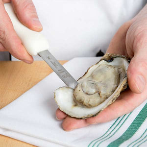 2 3/4" Stainless Steel New Haven Style Oyster Knife with White Textured Poly Handle