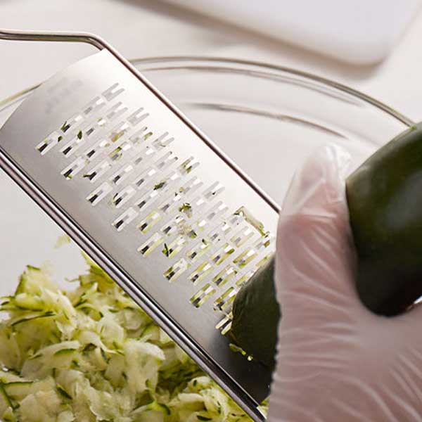 This 2 7/8″ grater is proficient in grating firm cheeses as well as a variety of other items. Use it to grate chocolate and cinnamon sticks for dessert dishes, as well as carrots, potatoes, and other vegetables. A rubber foot increases product stability, while a wide cutting surface allows for a quick and efficient grating process. Whether you need to quickly shred a large block of cheese for your brick oven pizzas or grate chocolate or coconut, this 2 7/8″ grater is sure to quickly do the job.