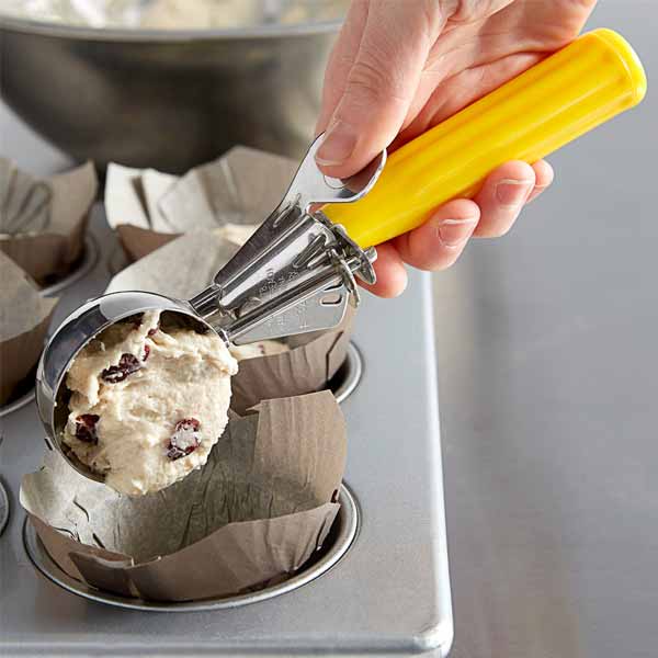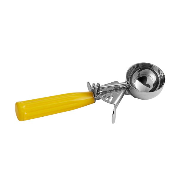 Best for use in a high volume environment, this 2 oz Stainless Steel Thumb Press Disher is constructed of stainless steel with all metal parts for added durability and cleanability. Its handle makes the capacity sizing and portion control a breeze when serving hot or cold foods in your restaurant, cafeteria, or bakery.
