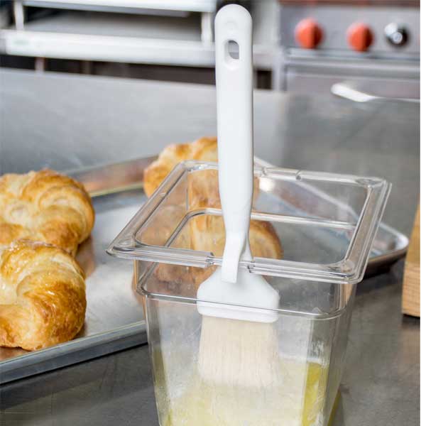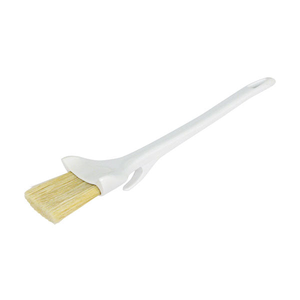A great addition to your home, bakeshop, or other foodservice facilities, the 2″ Wide Boar Bristle Pastry Brush with Concave Head and Hook from Winco is excellent for coating pies and pastries with egg wash or for basting barbecue ribs. This brush has durable nylon bristles that are heat resistant and epoxy-set to ferrules to prevent bacteria from collecting. This brush can be hung on the lip of crocks or containers while its one-piece plastic handle provides a comfortable grip.