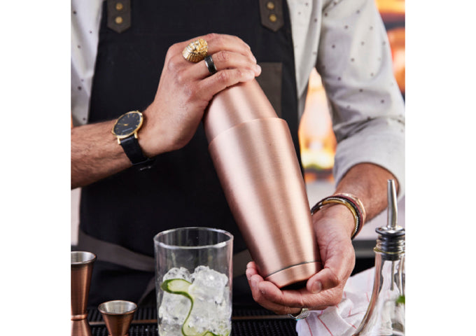 Designed for professional bartenders, our barware line delivers chic design, optimal mixing, precise measurement, and smooth pours for crafting and serving your inspired creations with style. For “behind the stick” pros, After 5™ shaker cups deliver capacity, efficiency, and speed. Create perfectly chilled cocktails with our tight seal, balanced shake, and easy separation.18/8 stainless steel maintains shape and resists corrosion.Cups deliver ideal seal, easy separation.Weighted, sturdy base.Satin-finish interior disguises scratches.Small and large cups fit together for shaking