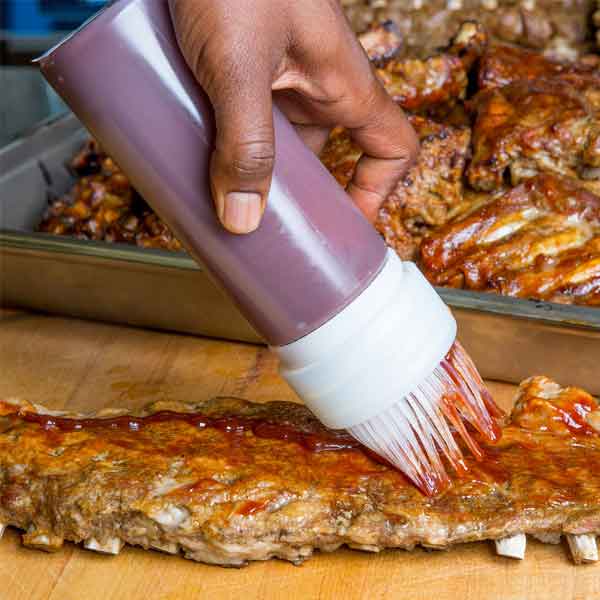 This Saferfood barbecue brush system makes seasoning and grilling your favorite meat easy. It holds up to 20 oz. and has tightly placed bristles to spread marinades or sauces and fully coat the meat. This bottle is perfect for diners, bistros, and restaurants that demand an alternative to messy sauce brushes. It’s perfect for applying your favorite sauces to chicken, ribs, and steak, and there is no chance of mixing brushes and sauces. You can even use it over and over because the durable, water-resistant silicone bristles for basting meats and pastries are snugly included within the plastic lid.