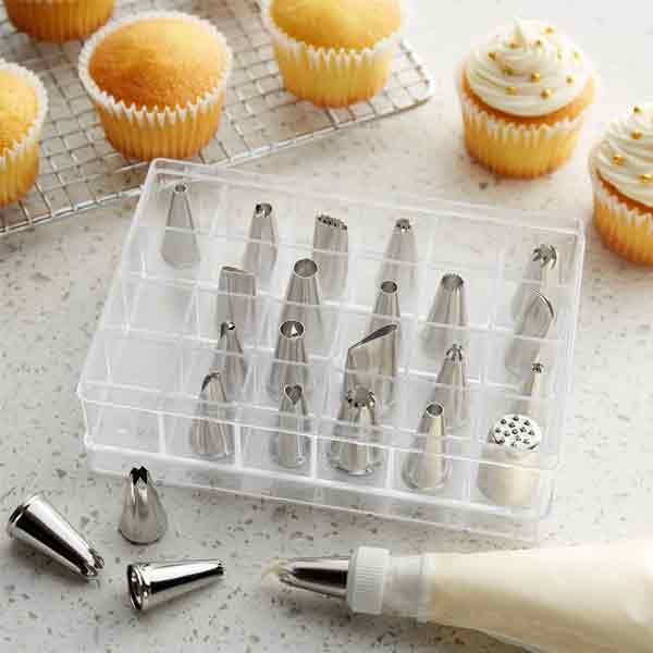These 24 Piece Stainless Steel Pastry Tube Decorating Set / Winco accompanies all that you requirement for essential cake and baked good improving! With this set, you get twenty-four of the most usually utilized cylinders, all strategically placed in a plastic stockpiling box. With the comfort of various sizes and styles promptly accessible, you can structure and make extraordinary cakes, treats, and cakes to enchant clients at your bread kitchen, cupcake shop, or bistro.