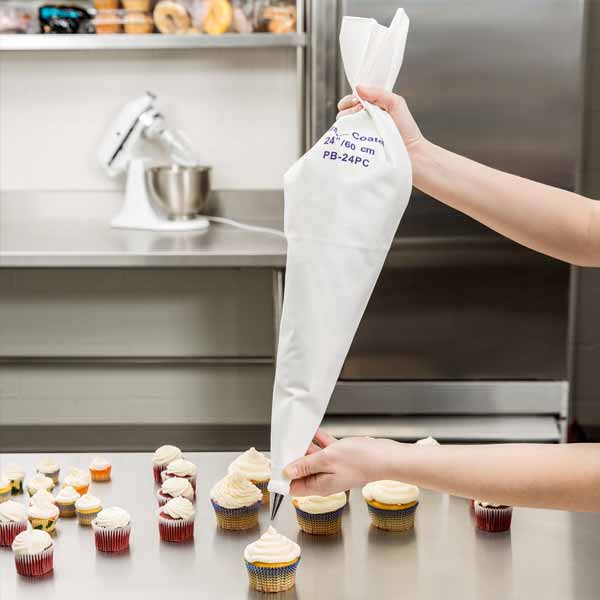 This 24″ Plastic Lined Canvas Pastry Bag is a great addition to any bakery, cafe, or foodservice establishment. You will see an increase in efficiency and a decrease in waste when you decorate with this pastry bag. It’s cotton cloth and plastic construction makes it not only strong but reusable. It’s ideal for frosting cakes and cupcakes, but it also works for elegant presentations of savory foods, such as mashed potatoes.