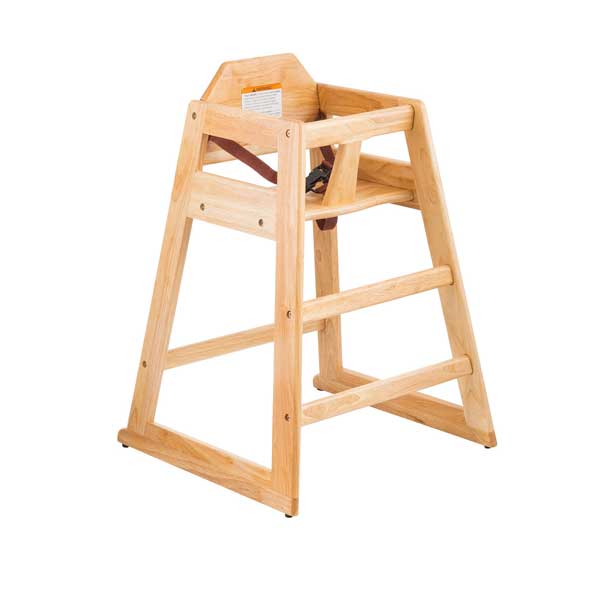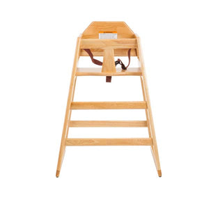 Provide your smallest guests with a place to sit with the restaurant wood high chair with a natural finish. It can easily keep your youngest guests safe and tightly secure while they’re in your family-friendly restaurant or diner. The chair is intended to keep children comfortably restrained, which helps to prevent any injuries or accidents. This also helps stop other guests and wait for staff from hurting themselves should they brush against the chair during their stay.
