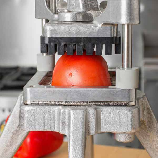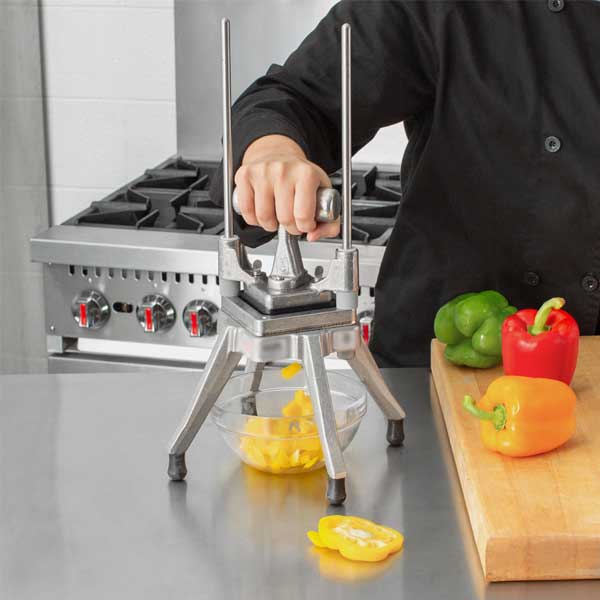 Ideal for food prep tasks, the 3/8″ Blade Kattex Chopper and Dicer from Winco is created to perfectly diced onions, tomatoes, potatoes, and more. This chopper highlights sturdy 3/8″ stainless steel blades that are sharp enough to cut through different produce. Constructed from cast aluminum, this chopper is easy to clean and will endure the rigors of commercial use. Also, with its sturdy base with non-skid feet, this chopper/dicer stays in place while in use guaranteeing safety and precision.