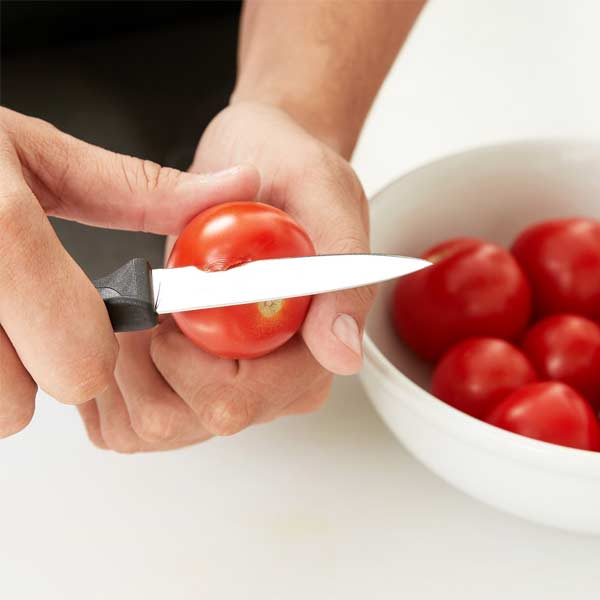 Use this 3 ” Paring Knife- 3 pack to peel, trim, and slice through fruits and vegetables. This makes it perfect for use in any bakery, sandwich shop, cafe, or restaurant. Its high carbon, stain-free steel blade effortlessly cuts through a variety of foods in your commercial kitchen and its enduring design allows for easy edge maintenance.
