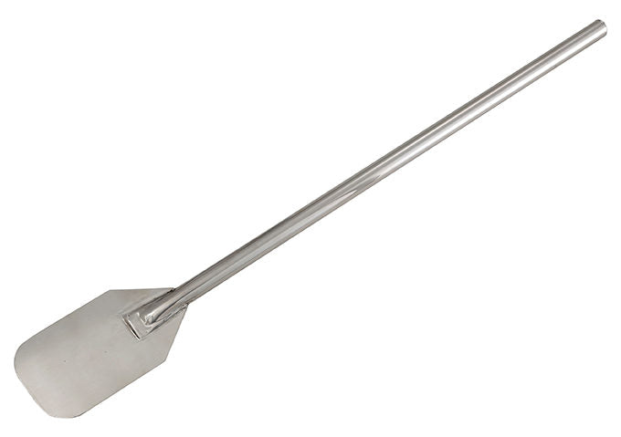 Deal for general mixing and stirring, the 24,36,48,60″ Stainless Steel Mixing Paddle from Winco is a handy kitchen tool. Highlighting a long, slender handle, this paddle allows you to hold onto it with 2 hands for superior control and leverage. While the blade’s chisel point and tapered sides make it simple to scrape the sides of large vats to guarantee ingredients are mixed properly, its handle length enables you to reach the bottom of kettles and pots for efficient stirring and even heating or cooking.