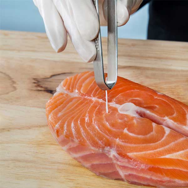 These 4 5/8″ Standard Fish Bone Tweezers are created to gently pull bones out of fish without breaking the tender bone or ruining the filet. The beveled tip edges of these tweezers give optimal accuracy and guarantee you have a firm grip of bones, while the cross-hatched grips assure you can keep a secure hold on the tweezers.