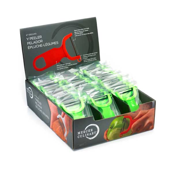 Peeling is a frequent cooking task – and one that’s particularly easy with the right kitchen gadget. Quickly and efficiently peel fruits and vegetables with this 4″ Green “Y” Vegetable Peeler with Straight S High Carbon tainless Steel Blade. This “Y” peeler offers an amazingly useful addition to both your back and front of house operation like quickly peel potatoes, carrots, and cucumbers in time for dinner service, or use to create strips of citrus peels to finish off your hand-crafted cocktail with a smart touch.