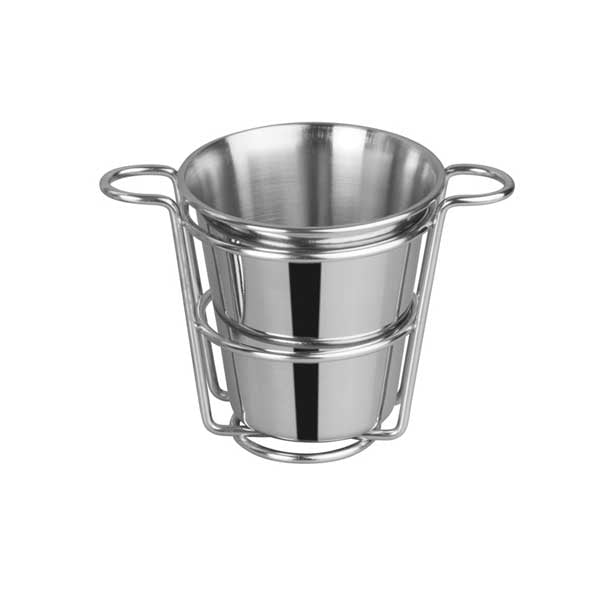 This Stainless Steel Fry Cup with Wire Holder is excellent for use in a casual or upscale setting. You can even pair this holder with a matching sauce cup to