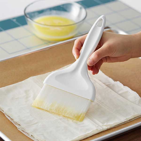 This 4″ brush highlights long-lasting nylon bristles that are the perfect softness for all your basting needs. These bristles have a high fluid retaining capacity, so whether you dip this brush in water, egg, or butter, it works to dispense this evenly over your pastries as opposed to absorbing it into the bristles. Also, the white bristles on this brush can be used as part of a color-coded system that improves food safety and prevents cross-contamination in your kitchen. With its wide design, this brush is perfect for jobs like basting a roast, buttering phyllo dough sheets, or applying an egg wash on large loaves and pastries.
