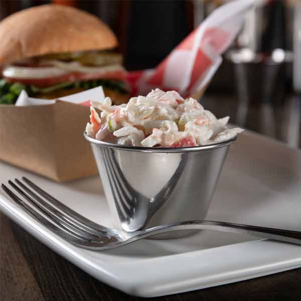 This 4 Oz. sauce cup gives a simple, cost-effective way to serve important condiments to your guests and is a great alternative to wasting disposable products. Use this round sauce cup in your easygoing restaurant, diner, or bar by pairing it with a matching fry cup for a simple, classic presentation. You can also serve sides of salsa, fresh jalapenos, olives, or syrup in the supplement to your traditional signature sauces.
