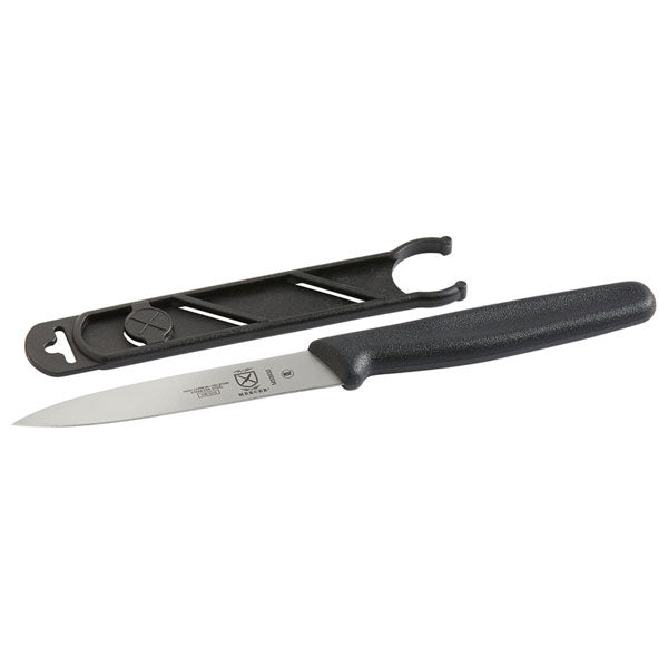 Designed to effortlessly cut fruits, herbs, and vegetables for garnishing puposes, or to make your signature drink, this 4″ Pointed Tip Paring / Bar Knife with Guard with Guard with Guard is sure to become a favorite in your commercial kitchen or bar. Its Pointed Tip lets you pierce through thick crusts or skins with ease and the serrated side is excellent for cutting through tough skins.