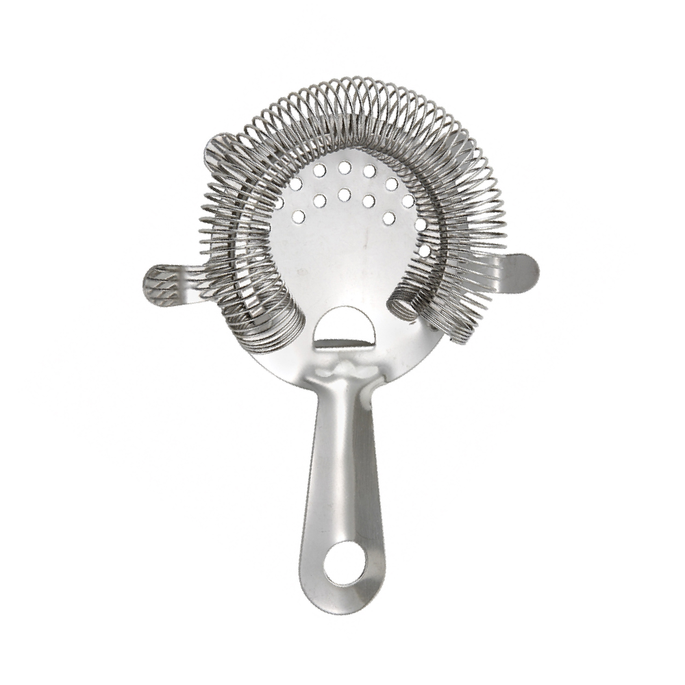 This 4 Prong Stainless Steel Cocktail / Bar Strainer is great for draining your mixed drinks from a bar shaker into a glass to create a finished product with the