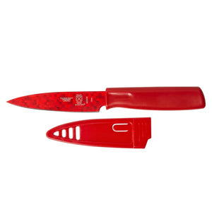 This 4″ Red Non-Stick Paring Knife with Sheath furnishes a commercial quality blade with modern style. The blade’s high carbon, no stain, Japanese steel edge gives a prevalent, extremely sharp